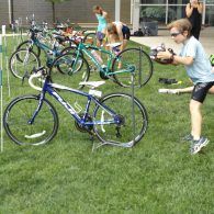 ESF Campers participating in Triathlon Camp rounded out their week with a camp-wide Triathlon on Friday afternoon. Counselors and Center for Growth and Innovation Directors transformed the camp facility into an exciting course, and family and friends were invited on campus to watch as their campers completed the swim, bike and run portions of the competition.