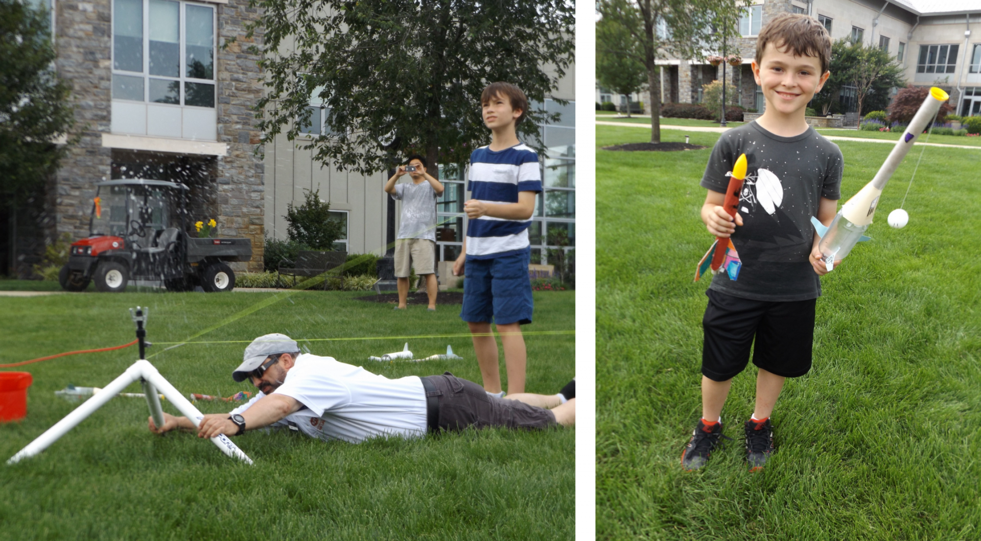 Campers in the Space & Rocketry class within the Center for Growth and Innovation program got to launch their very own rockets this afternoon. After setting up their launch pads, campers brought out their water rockets and CO2 rockets to deploy in front of family and friends who were invited to watch.