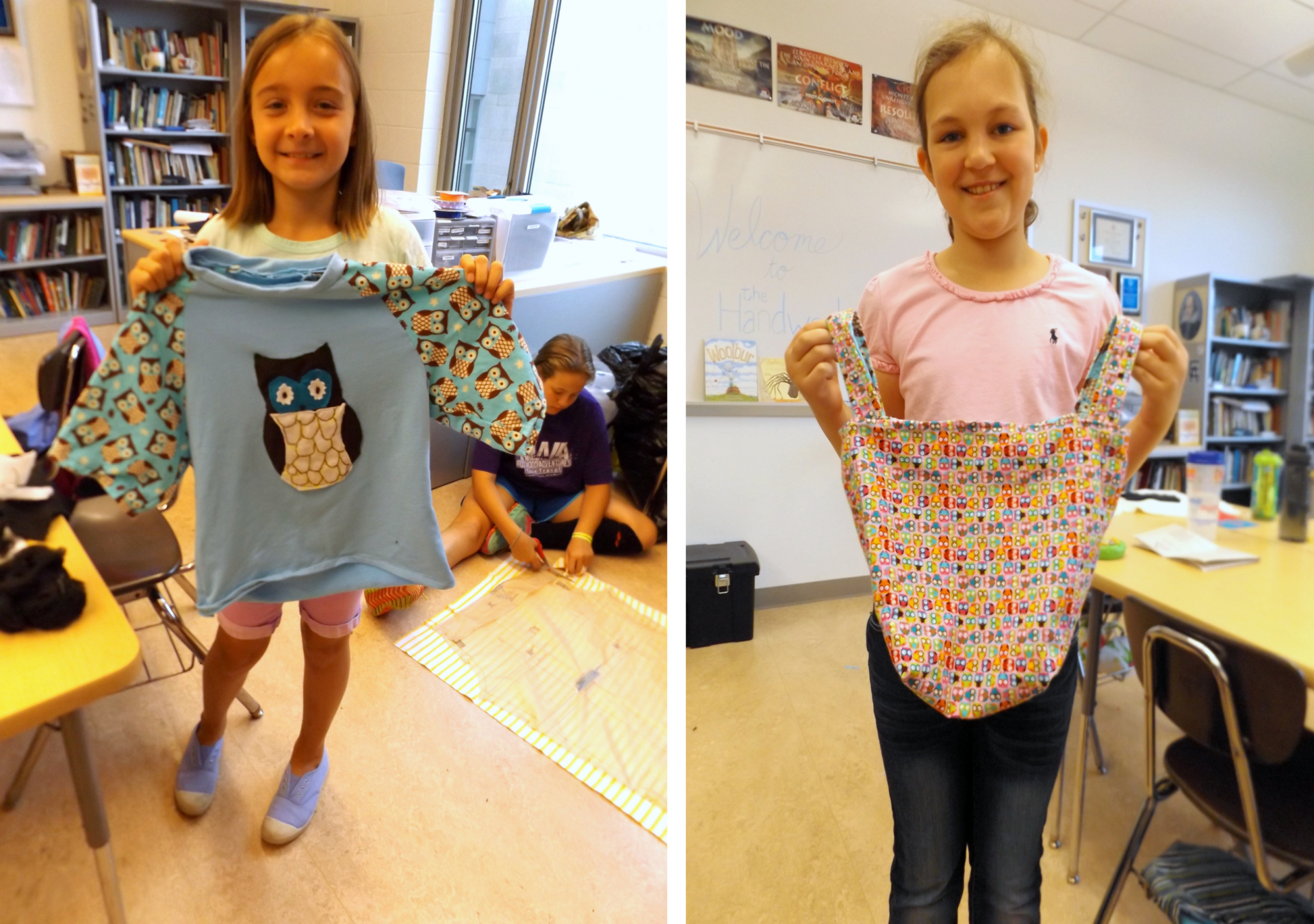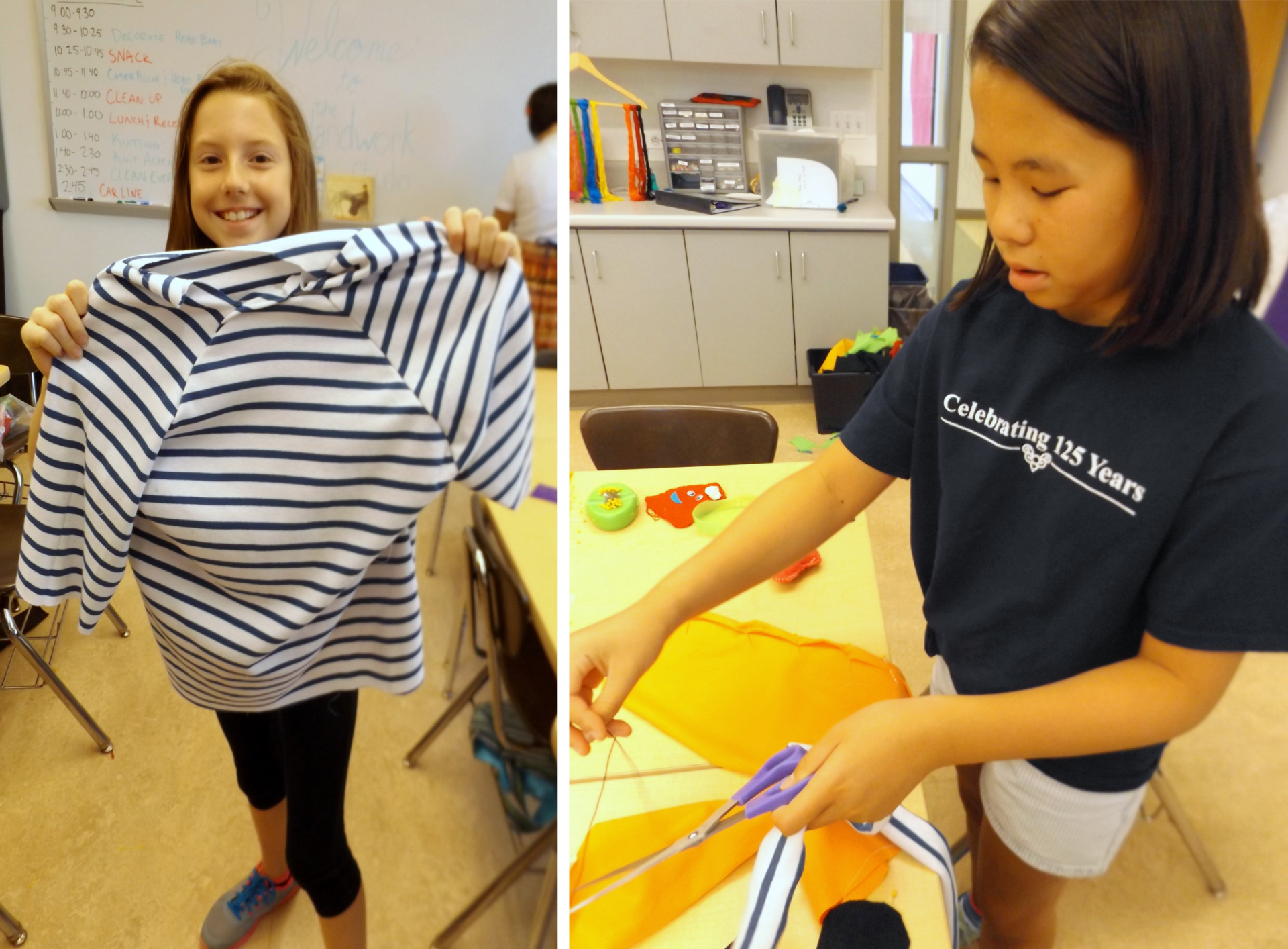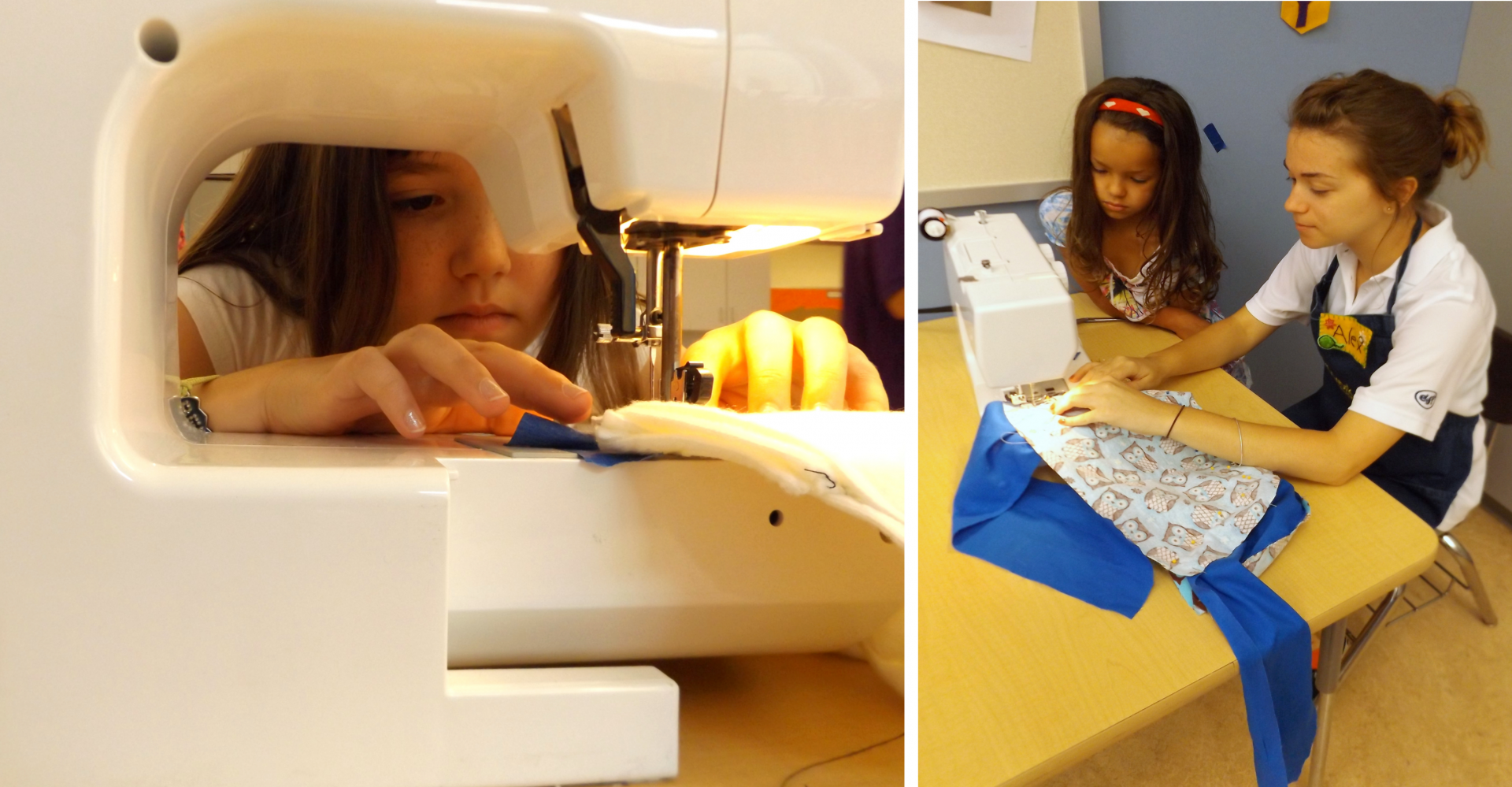 Just three days into the week, they’ve already got completed shirts and bags and are well on their way to finishing up sweatshirts and dresses too. Some campers are even getting creative and mixing patterns, fabrics and sewing techniques to really make their projects one of a kind.