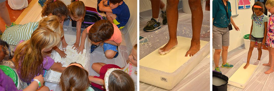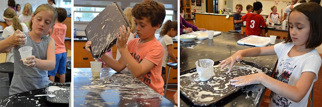 The pictures below and above show campers working on creating Ooblec Goo, which is a substance made from simple cornstarch and water. The Ooblec is soft to touch, but turns into a fun goo as soon as it is separated from itself. Campers made their own individual batches of Ooblec, and then they got a chance to walk in an Ooblec Pit as a big group. Talk about ooey and gooey!
