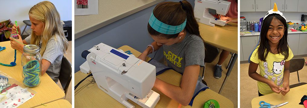 DSC_0065There’s a whole new crop of campers signed up for the Fiber Creations, Pet Palooza and Handworks courses this week within the Center for Growth and Innovation (CGI) program. Each one is hard at work, trying their best to master the Wonder Loom, sewing machine, and knitting needles.