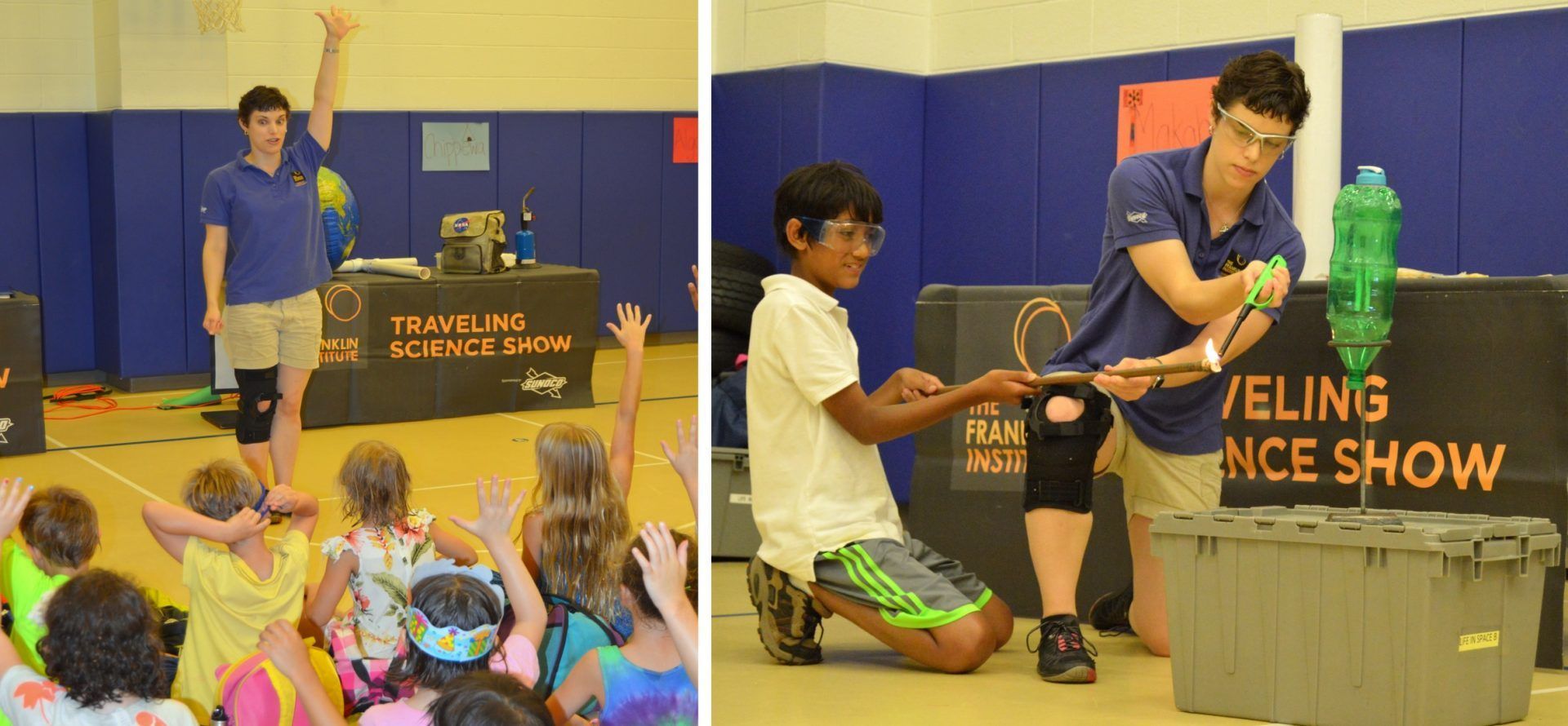 Campers participating in the Space & Rocketry course as a part of The Center for Growth and Innovation (CGI) program got a visit from The Traveling Science Show today. Miss Nicole from The Franklin Institute brought along a super fun show that taught campers all about how gravity in outer space affects astronauts.