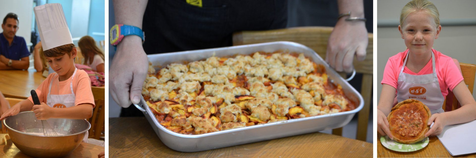Today’s meal was all about the dough. The spread that campers served consisted of roasted vegetables, focaccia bread, peach cobbler and shortbread biscuits with lemon curd and a blueberry compote. Campers were excited to show their families how much they learned and have a tasty plate of food to end their day.