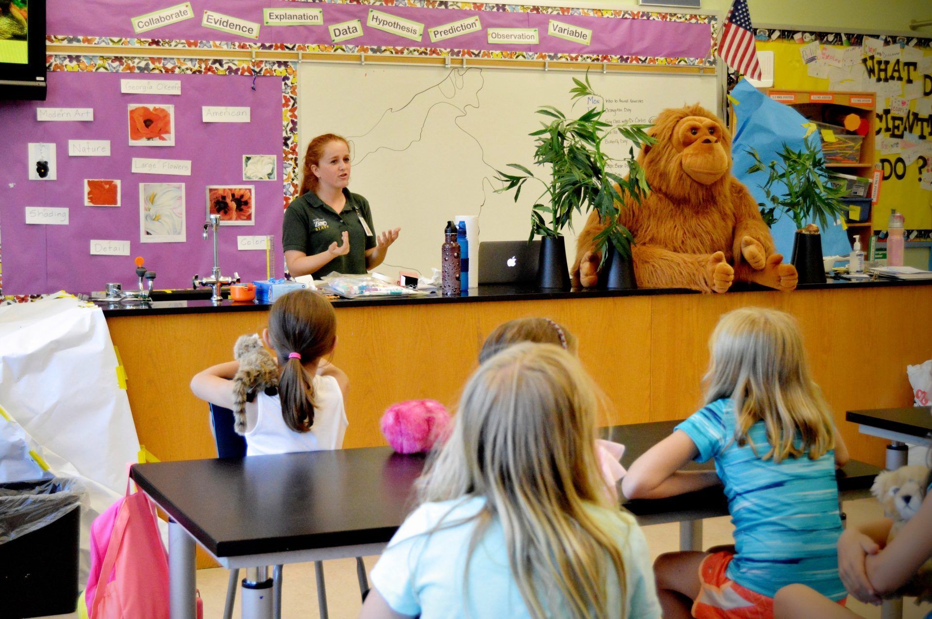 Today, campers learned about orangutans. Instructors from The Philadelphia Zoo talked about the eating habits, social interactions and living environment. They discussed the similarities and differences between orangutans and humans. Campers learned how the rainforest is getting smaller due to deforestation and orangutans are losing their homes. Everyone went outside to play a game to simulate deforestation, it was very educational!