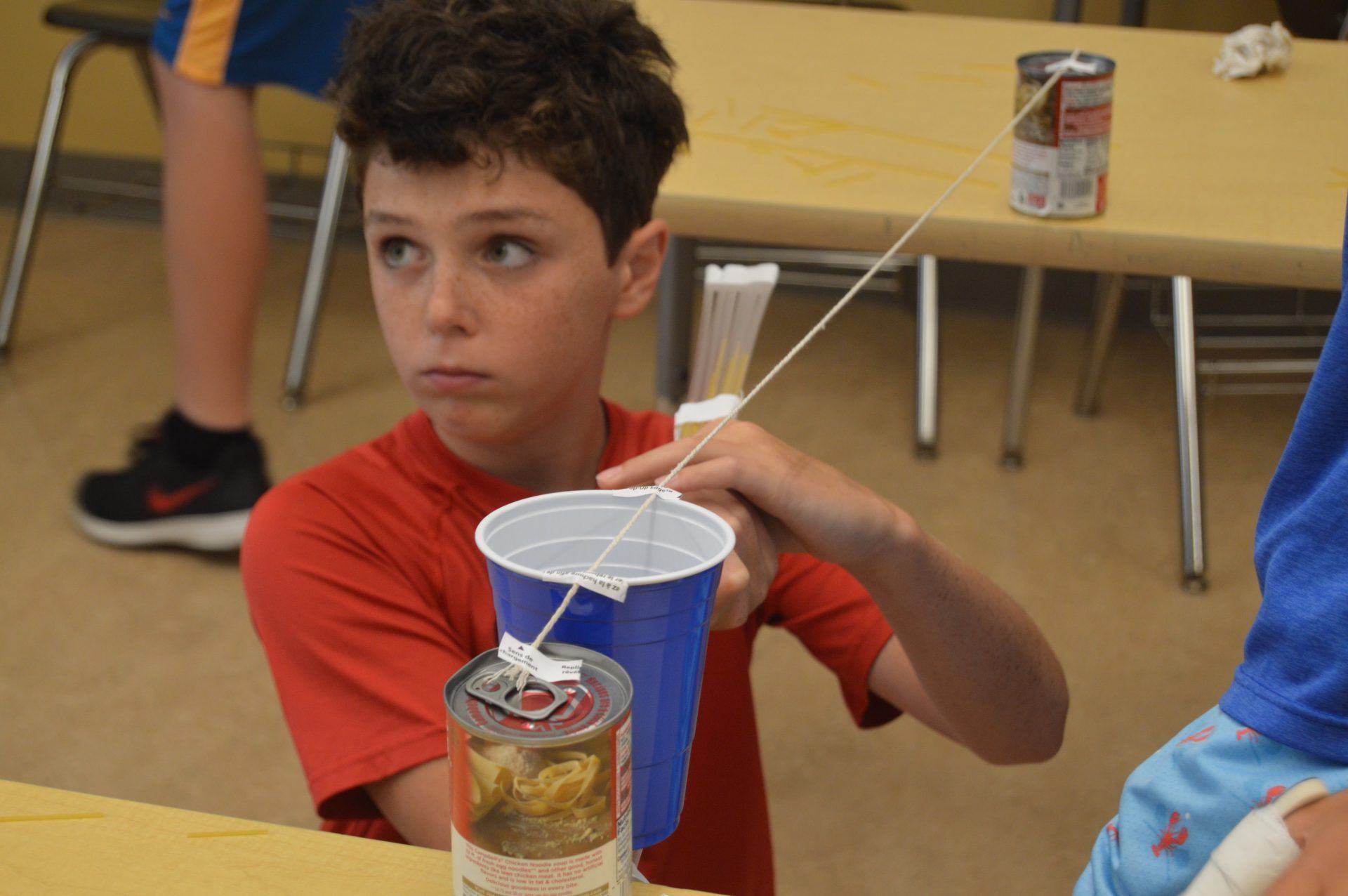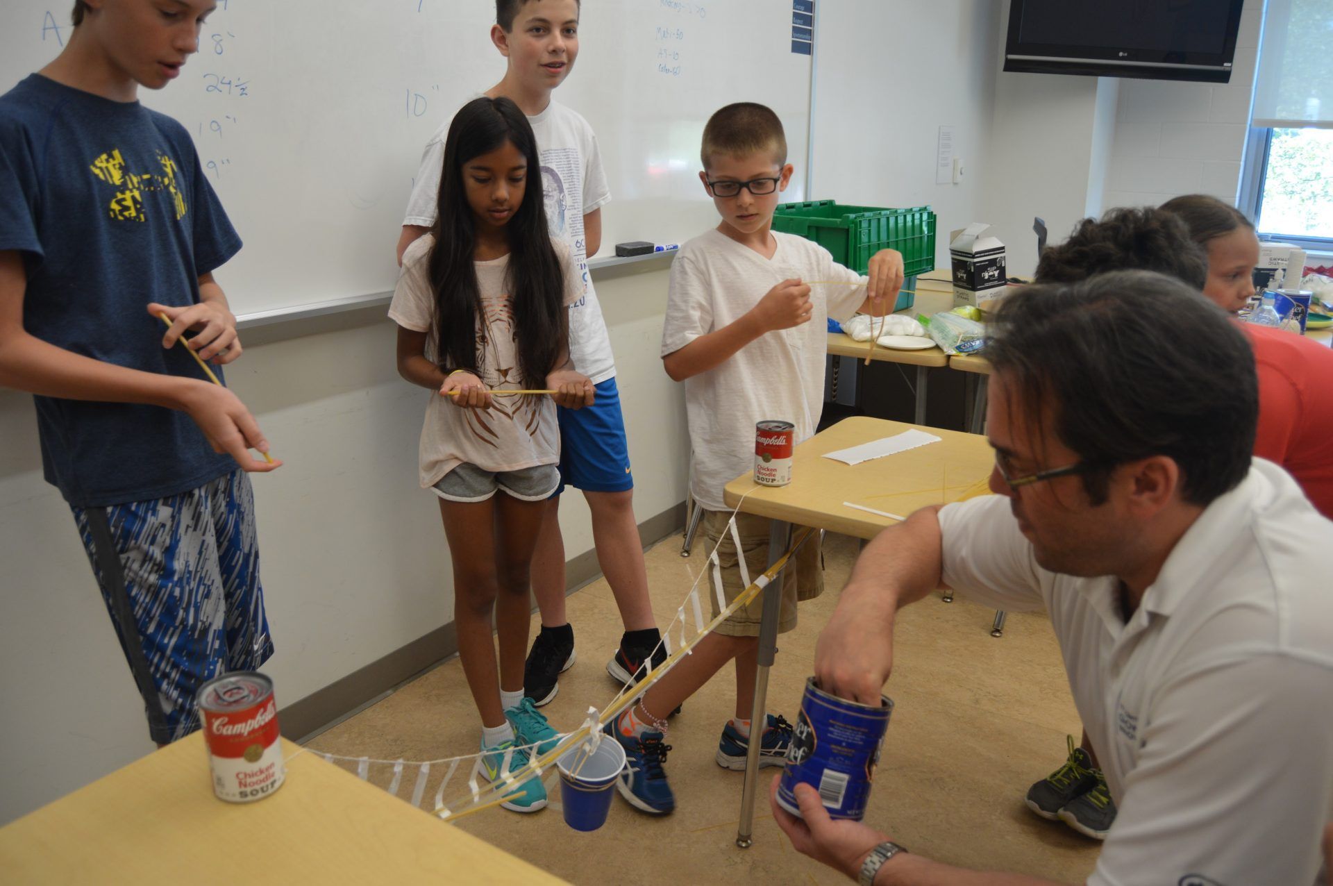 One of their most creative challenges was to build a bridge just using straws, raw spaghetti and string. They were also given two soup cans to anchor the bridge. The goal of the problem was to build a structure strong enough to hold fifty-two marbles in a cup. The campers got creative with designs, some teams made bridges modeled after a typical bridge and some took an imaginative approach. Two groups had bridges that were able to hold all fifty-two marbles, pretty impressive. Keep thinking outside the box!
