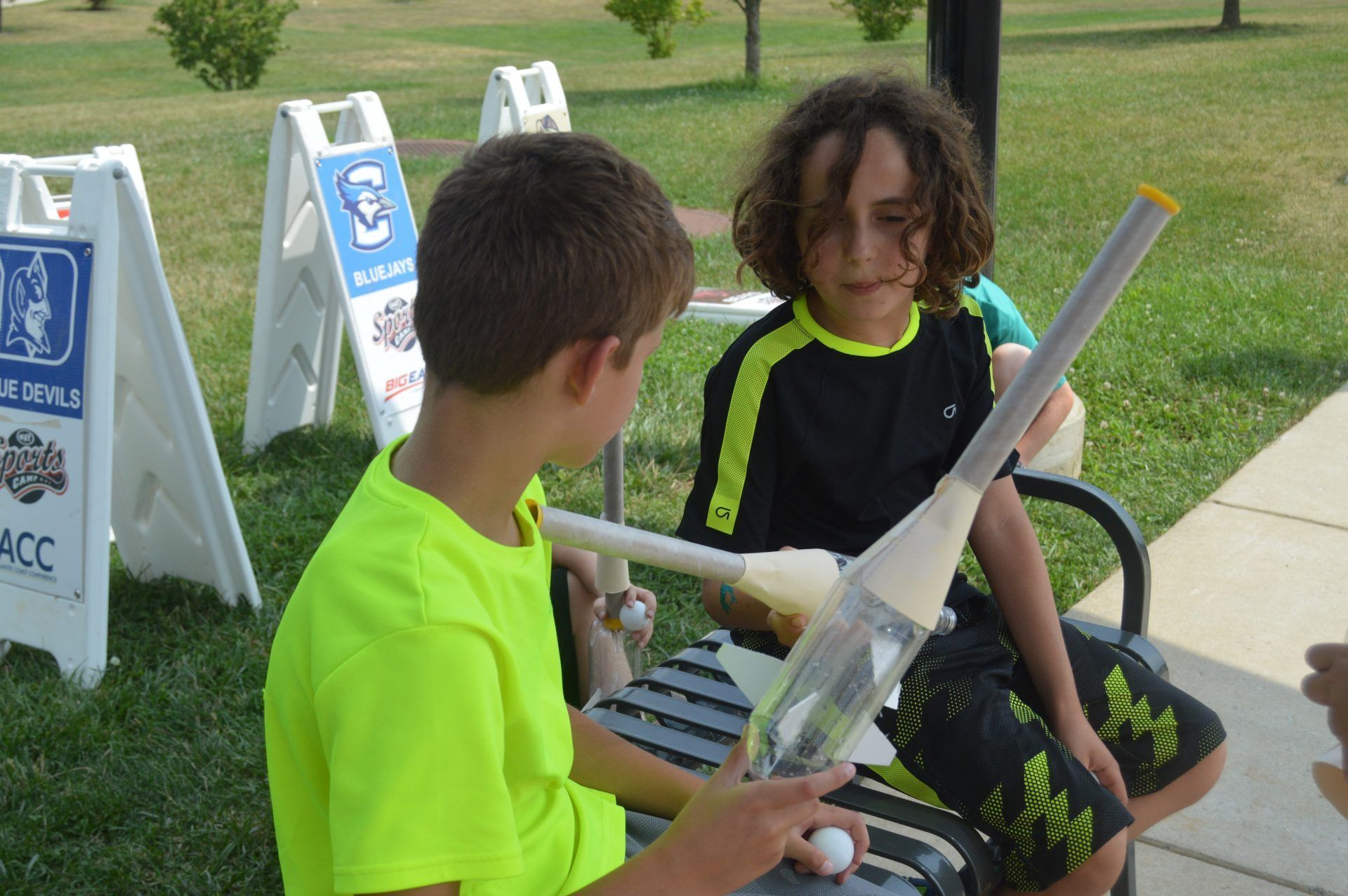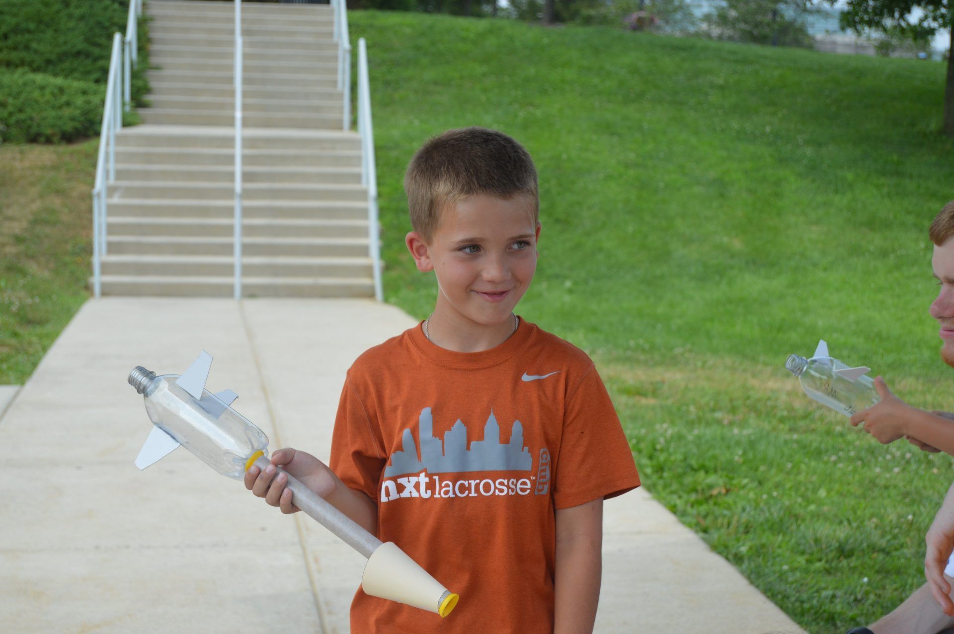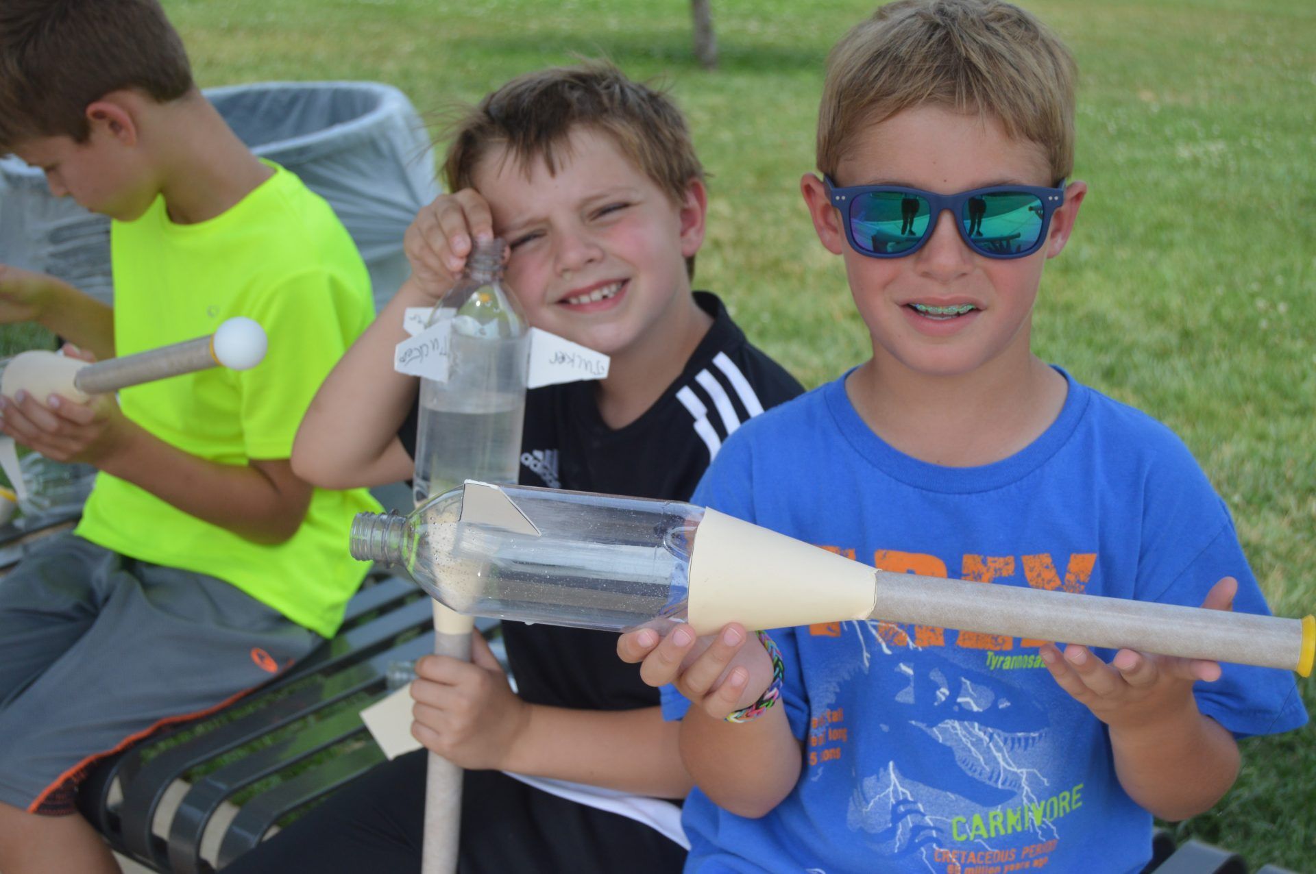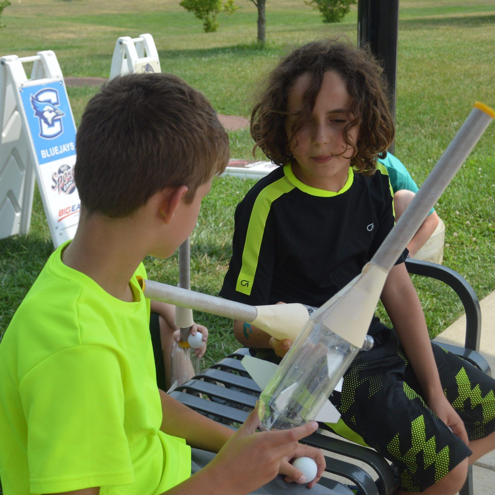Campers in space and rocketry blasted into the week with a rocket launch. Campers will spend the week exploring the laws of motion and the physics of rocket flight including propulsion, lift, drag, velocity, and aerodynamics. They will apply their knowledge of physics to build a variety of rockets including a water fueled rocket and a solid-fueled rocket.