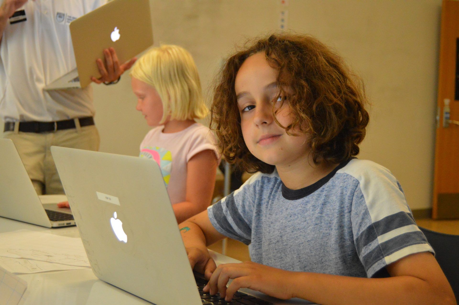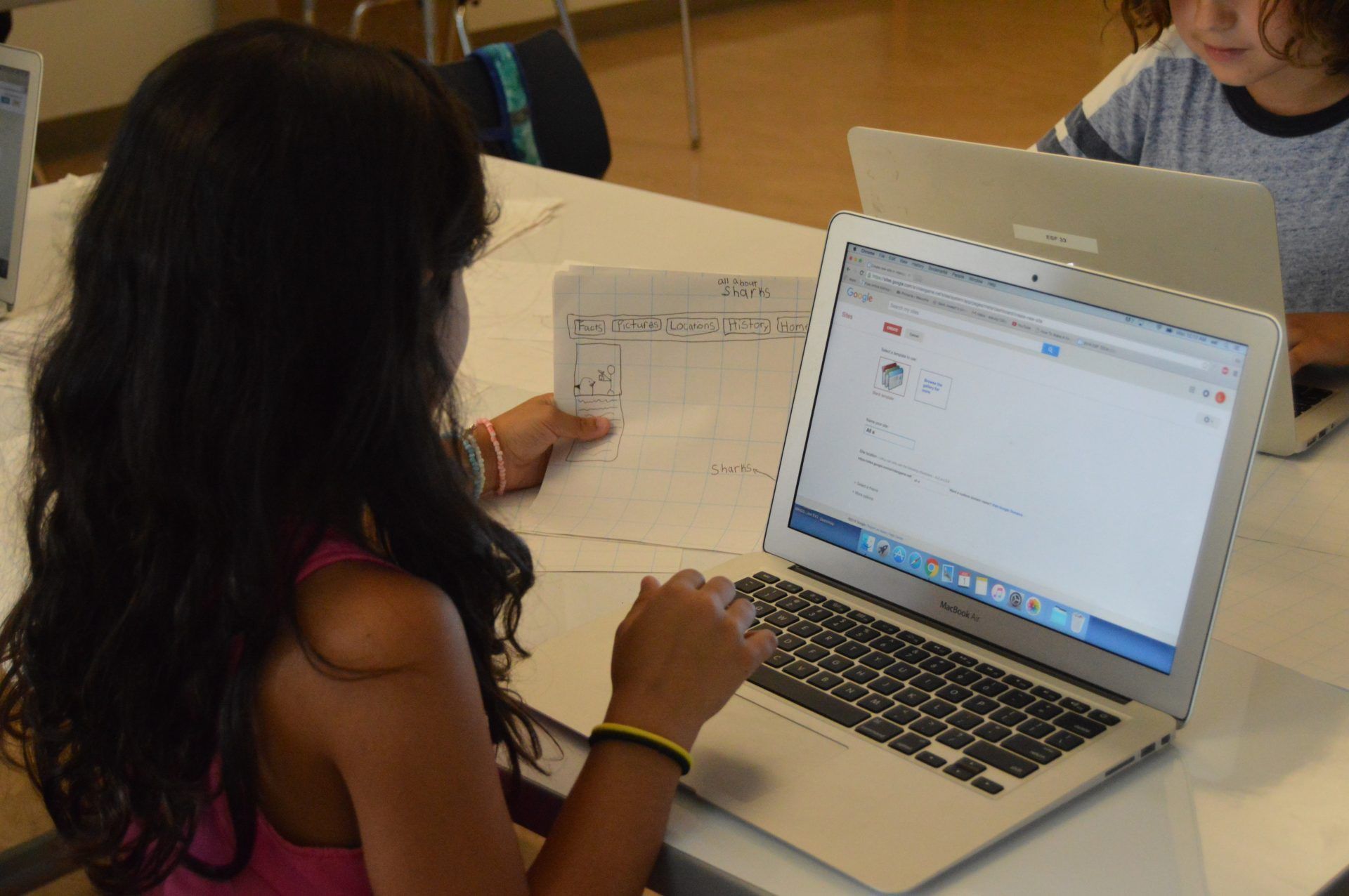 Campers in Web Design 4 Kids get to spend the week designing and building their own websites! Today they started to learn the basic of creating a website and how to use Google Sites software. Throughout the week they will also be introduced to simple graphic design software.