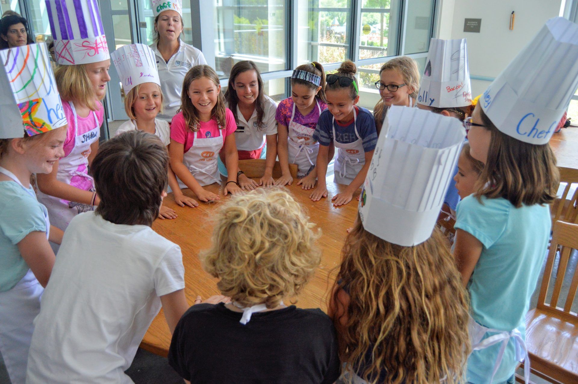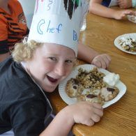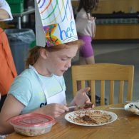 All week they covered fundamentals such as basic knife skills, how to read and follow a recipe, measuring, mixing, and the importance of kitchen safety. Best of all, they got to look at the scientific details of cooking: the importance of specific amounts of ingredients and cooking times, and more fun ideas such as how yeast reacts to sugar and warmth. Today campers showed off some homemade fruit tarts and healthy dessert granola as well as talking about the processes they’ve gone through this week.